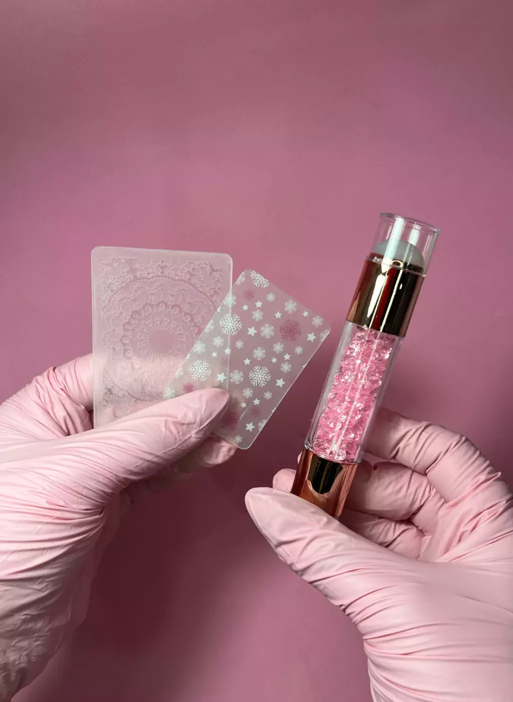 Sello De Stamping Doble con cristales Base Silicona Mas Placa